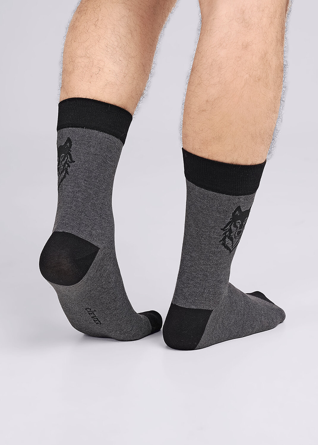 Мужские носки с выделенными мыском и пяткой с рисунком голова волка на паголенке