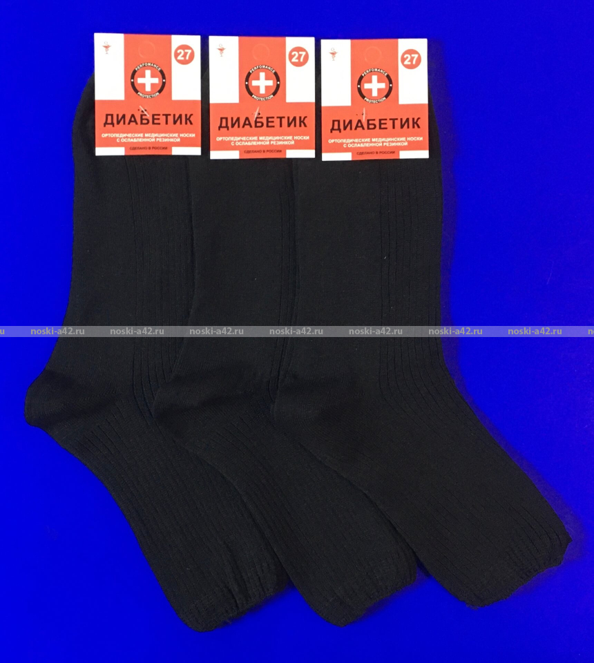 Диабетик носки мужские медицинские со слабой резинкой М-20 черные