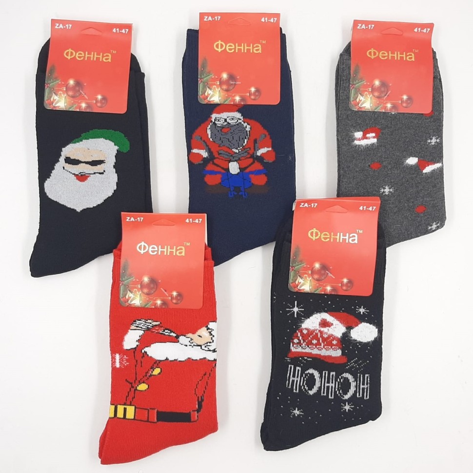ФЕННА Носки мужские Высокие Хлопок Махровые НОВЫЙ ГОД (41-47) (ZA-17) К10