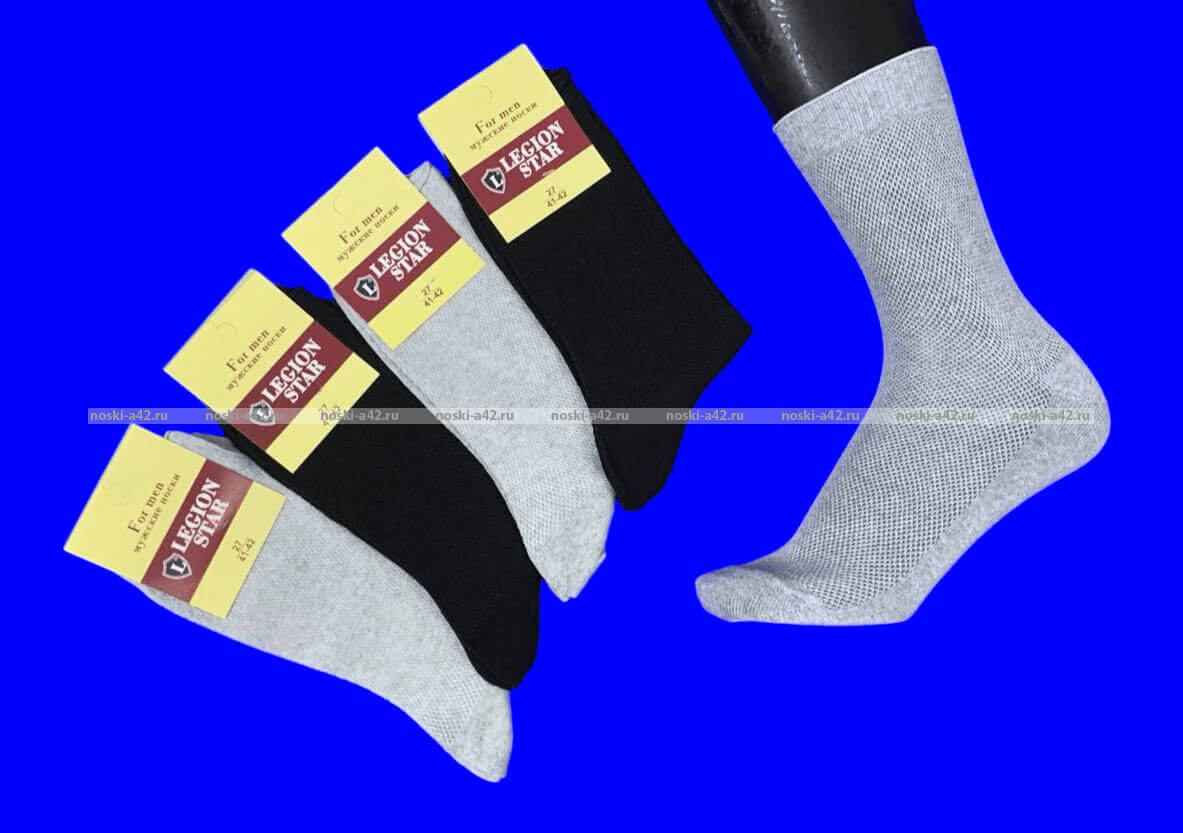 Легион носки мужские сетка оптом. Носки выпускаются в черном и сером цвете. В упаковке 10 пар одного размера и цвета.