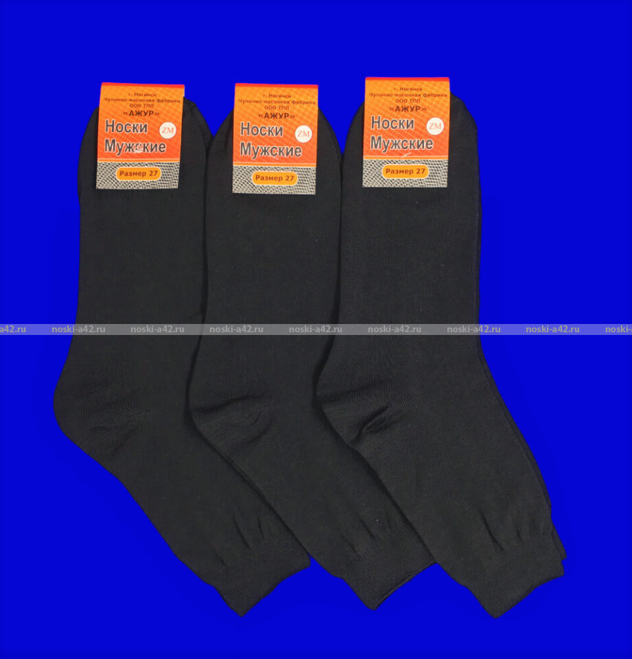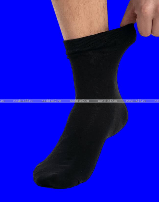 Носки мужские уплотненные 100% хлопок черные гладкие оптом.