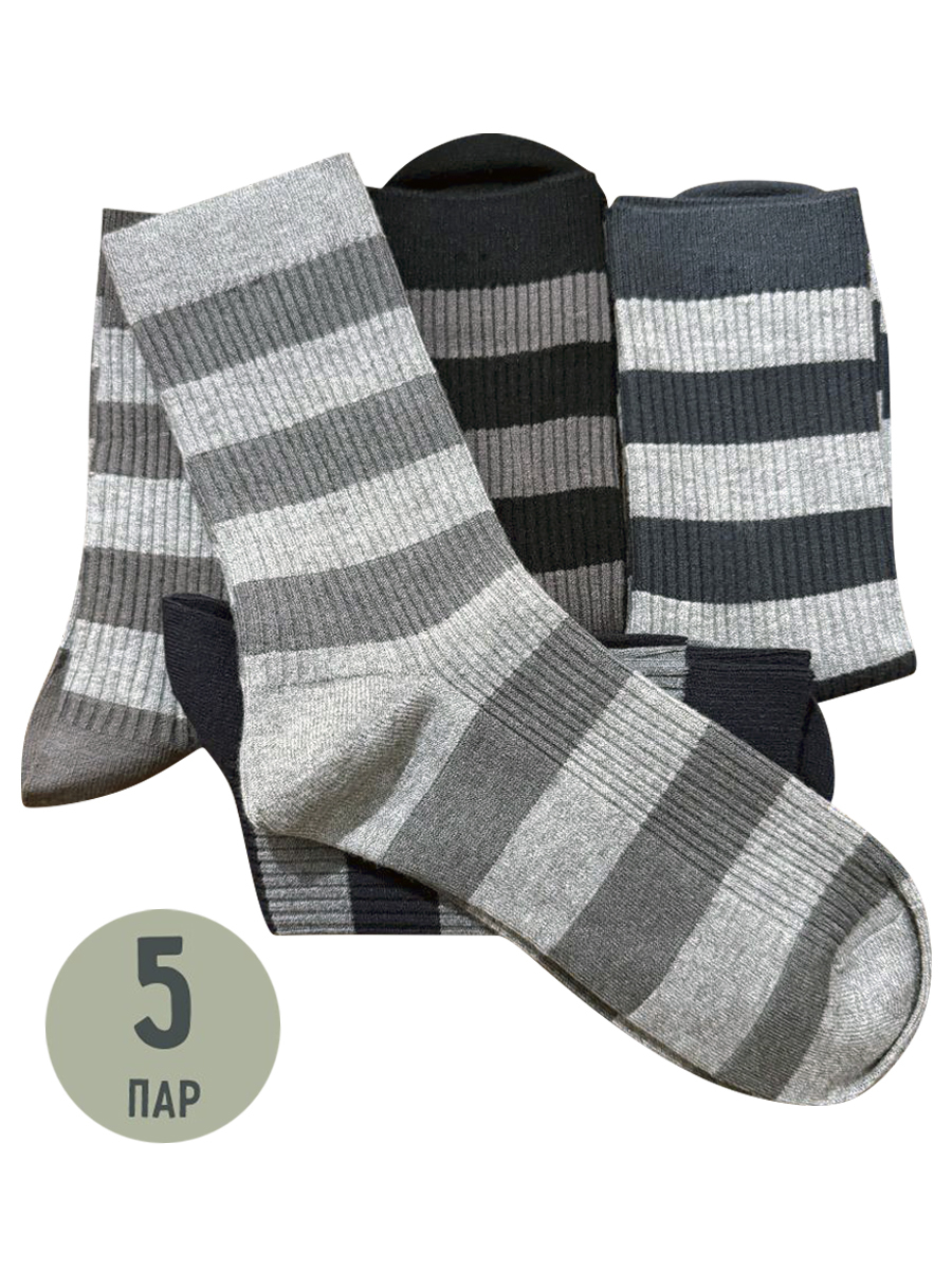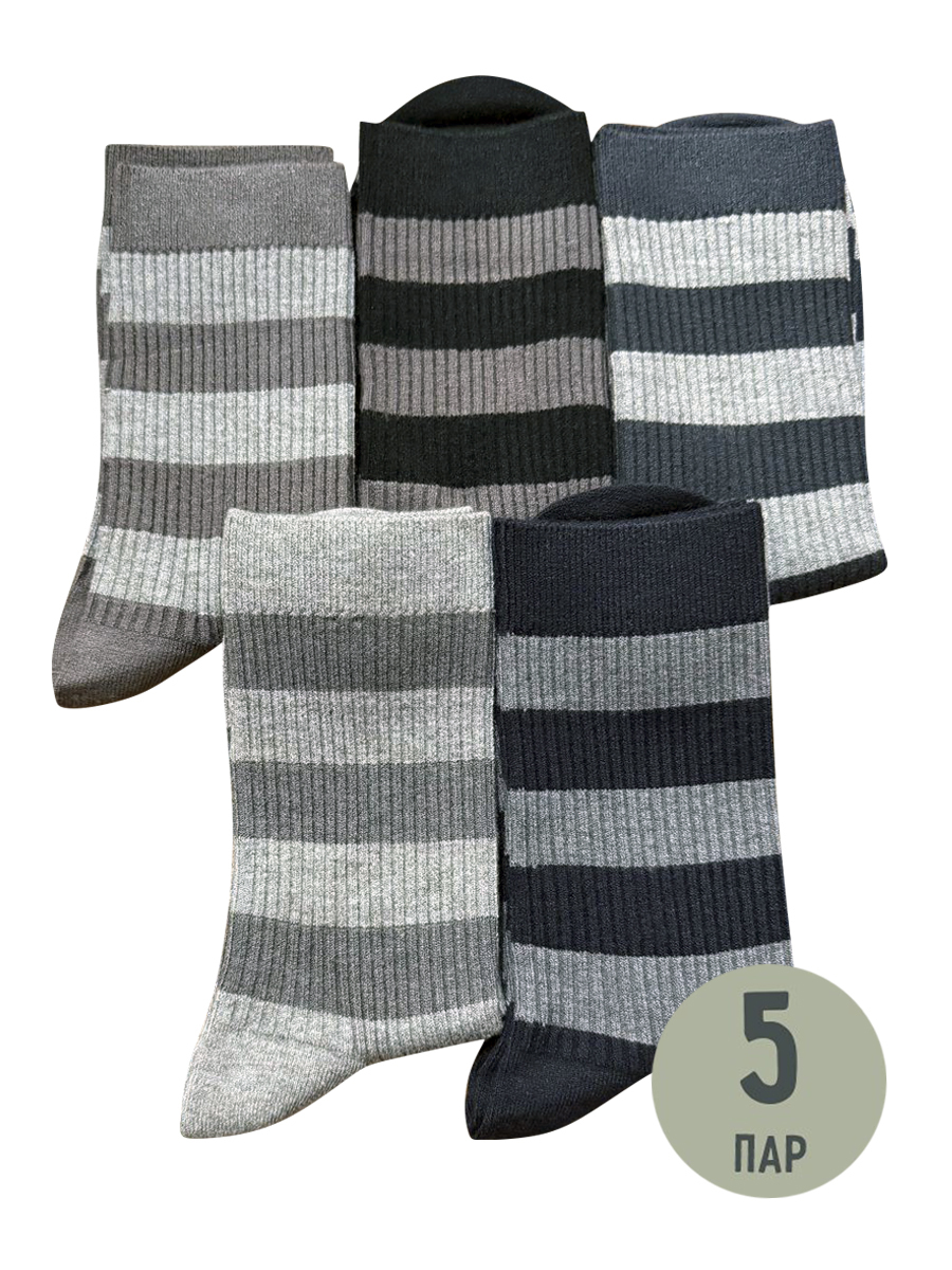 Носки р.40-45 "Полосатики Утепленные" Комплект - 5 пар