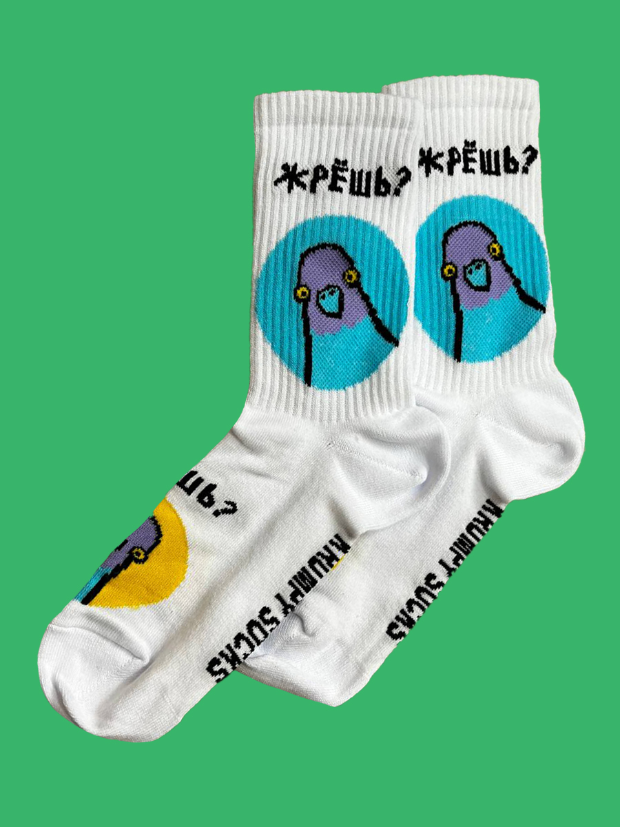 Принт: забавного голубя с надписью "Жрёшь ?"