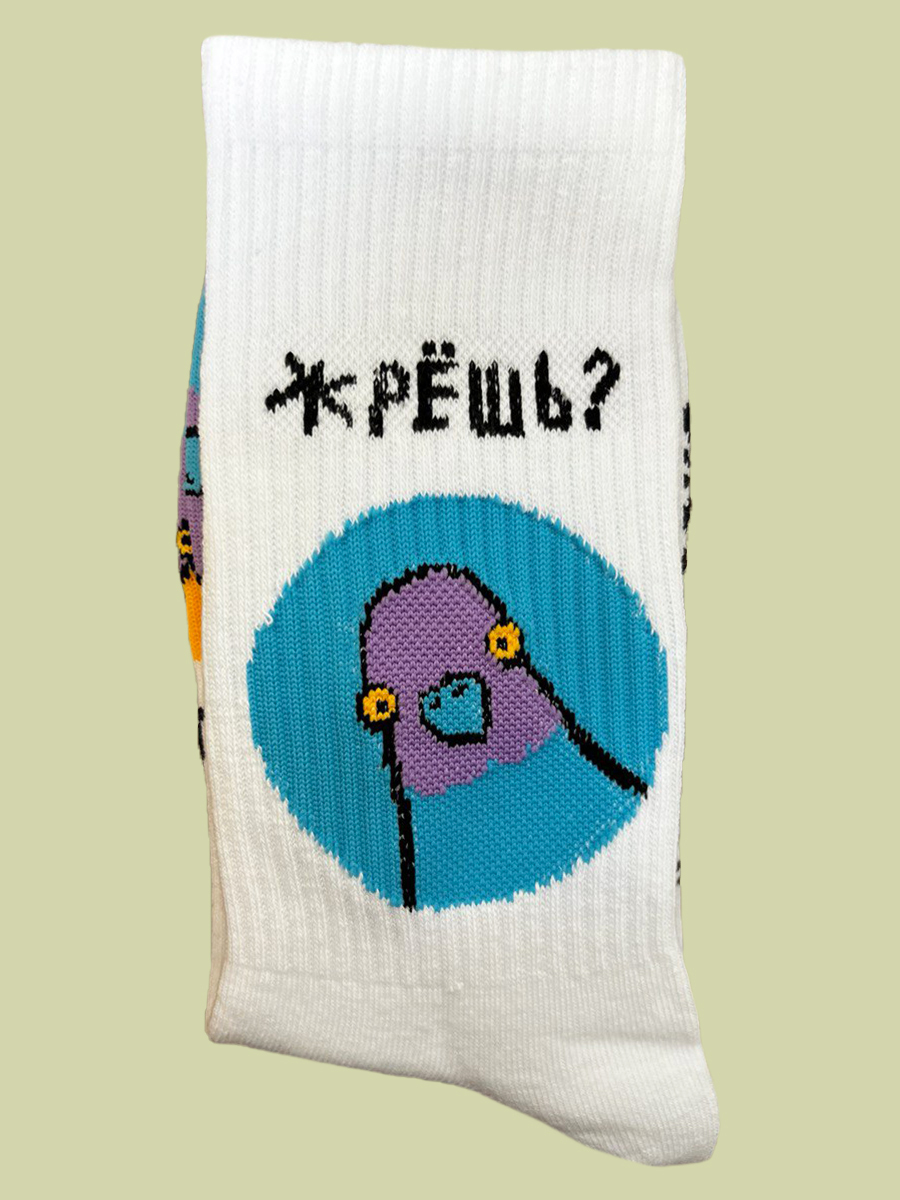 Принт: забавного голубя с надписью "Жрёшь ?"