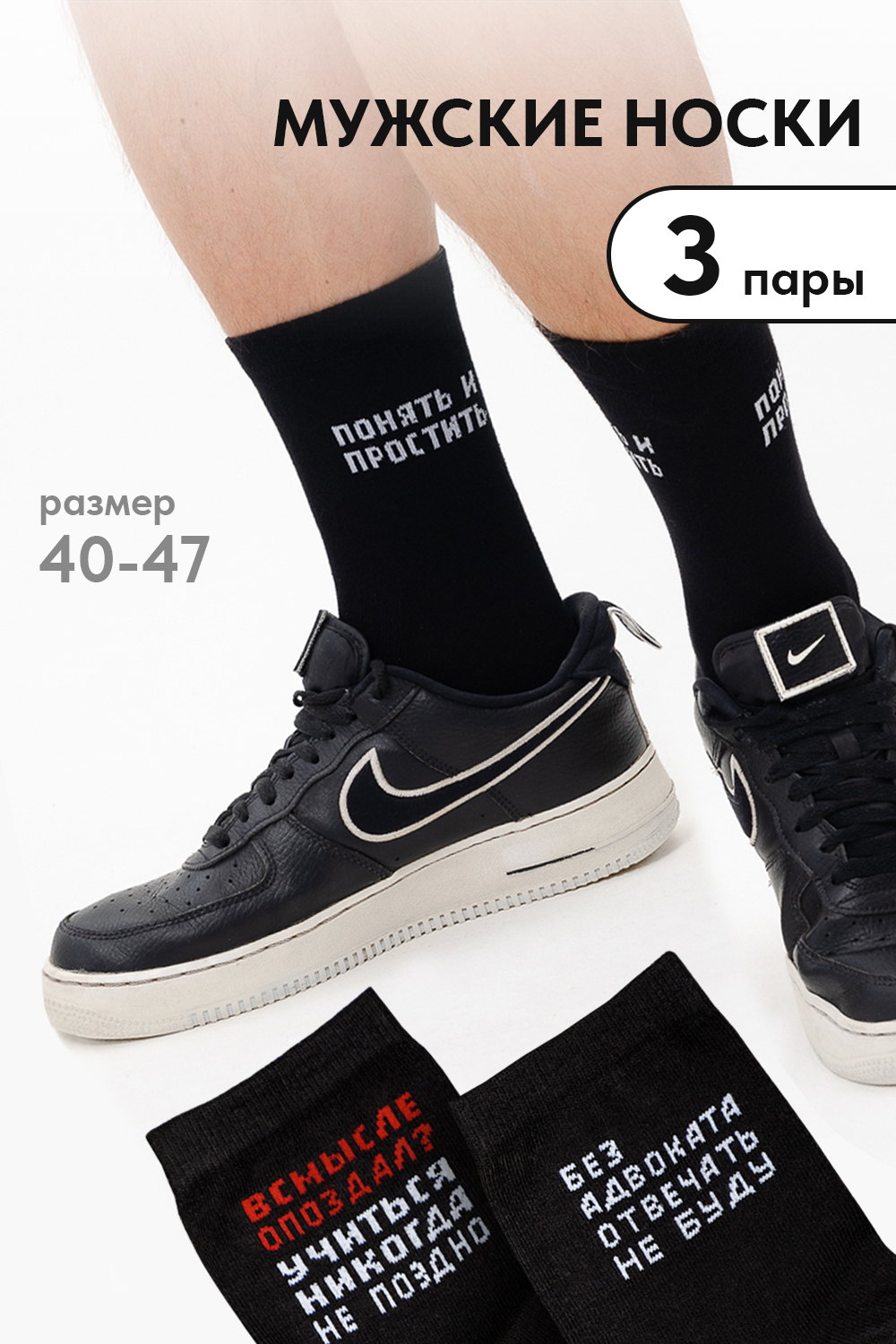Набор мужских носков с оригинальными надписями. В упаковке 3 пары