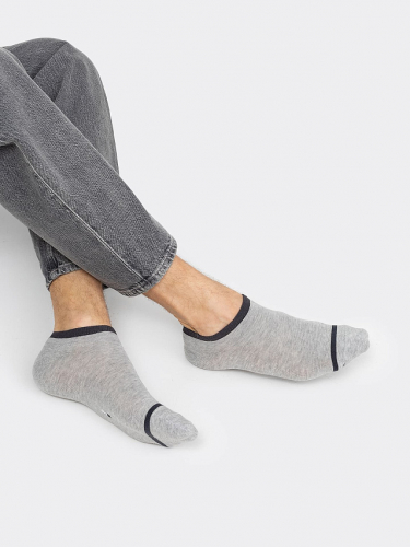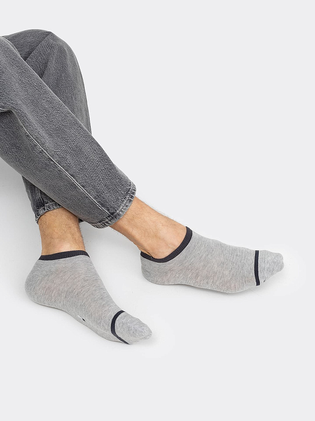 Короткие носки мужские с рисунком в виде полоски — отличная возможность внести разнообразие и поднять настроение в праздники. Изготовлены из гребенного хлопка - пряжи высочайшего качества, мягкой, тонкой, но прочной. Натуральные волокна отлично пропускают воздух, позволяя коже дышать, и впитывают влагу, дарят ощущение комфорта в течение всего дня. Благодаря небольшому количеству эластана в составе, носки хорошо облегают стопу и сохраняют форму даже после множества стирок. Мягкая эластичная резинка надежно удерживает носки на ноге, но не давит. Пятка и мысок дополнительно усилены, что гарантирует защиту от протирания и повышенную износостойкость — мужские носки с принтом прослужат долго. Лучший выбор на каждый день. Рекомендуем!