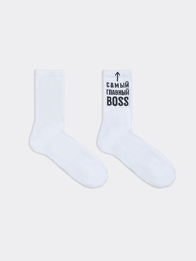 Носки мужские классические высокие с плотным бортом и рисунком в виде надписи - нескучный вариант для ежедневной носки. Длинные носки мужские однотонные изготовлены из гребенного хлопка - пряжи высочайшего качества, мягкой, тонкой, но прочной. Натуральные волокна отлично пропускают воздух, позволяя коже дышать, и впитывают влагу, дарят ощущение комфорта в течение всего дня. Благодаря небольшому количеству эластана в составе, длинные носки хорошо облегают стопу и сохраняют форму даже после множества стирок. Мягкая эластичная резинка надежно удерживает носки на ноге, но не давит. Пятка и мысок дополнительно усилены, что гарантирует защиту от протирания и повышенную износостойкость - мужские носки с принтом прослужат долго. Купите высокие носки мужские от Mark Formelle - порадуйте родных и близких практичными подарками!