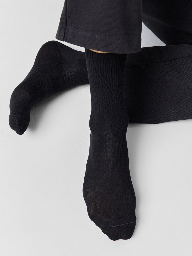 Рис.1663 Мужской носок классический высокий с плотным бортом однотонный.