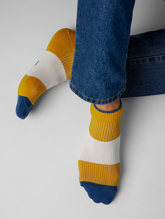 рис. 2724 Укороченные мужские носки с перекидкой на верхней части стопы, поперечными полосками и цветным мыском.