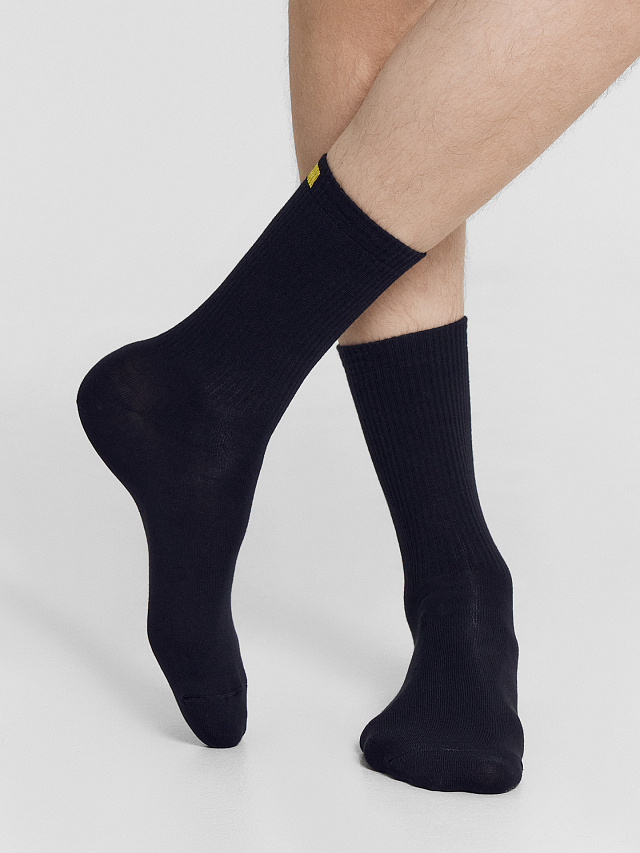 Рис.1916 Мультипак из трех пар мужских носков классических высокий с плотным бортом и рисунком в виде прямоугольника на бортике.
