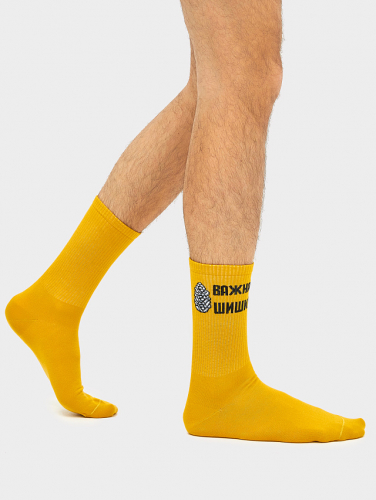 Носки мужские классические с высоким плотным бортом и рисунком в виде надписи "ВАЖНАЯ ШИШКА" — оригинальный и удобный вариант для ежедневной носки. Длинные носки мужские однотонные изготовлены из гребенного хлопка - пряжи высочайшего качества, мягкой, тонкой, но прочной. Натуральные волокна отлично пропускают воздух, позволяя коже дышать, и впитывают влагу, дарят ощущение комфорта в течение всего дня. Благодаря небольшому количеству эластана в составе, длинные носки хорошо облегают стопу и сохраняют форму даже после множества стирок. Мягкая эластичная резинка надежно удерживает носки на ноге, но не давит. Пятка и мысок дополнительно усилены, что гарантирует защиту от протирания и повышенную износостойкость — мужские носки с принтом прослужат долго. Отличный выбор на каждый день. Рекомендуем!