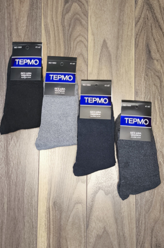 Плотные, мягкие и тёплые однотонные мужские носки внутри махровые. Паголенок классической высоты. Размер универсальный. Производство Китай.
