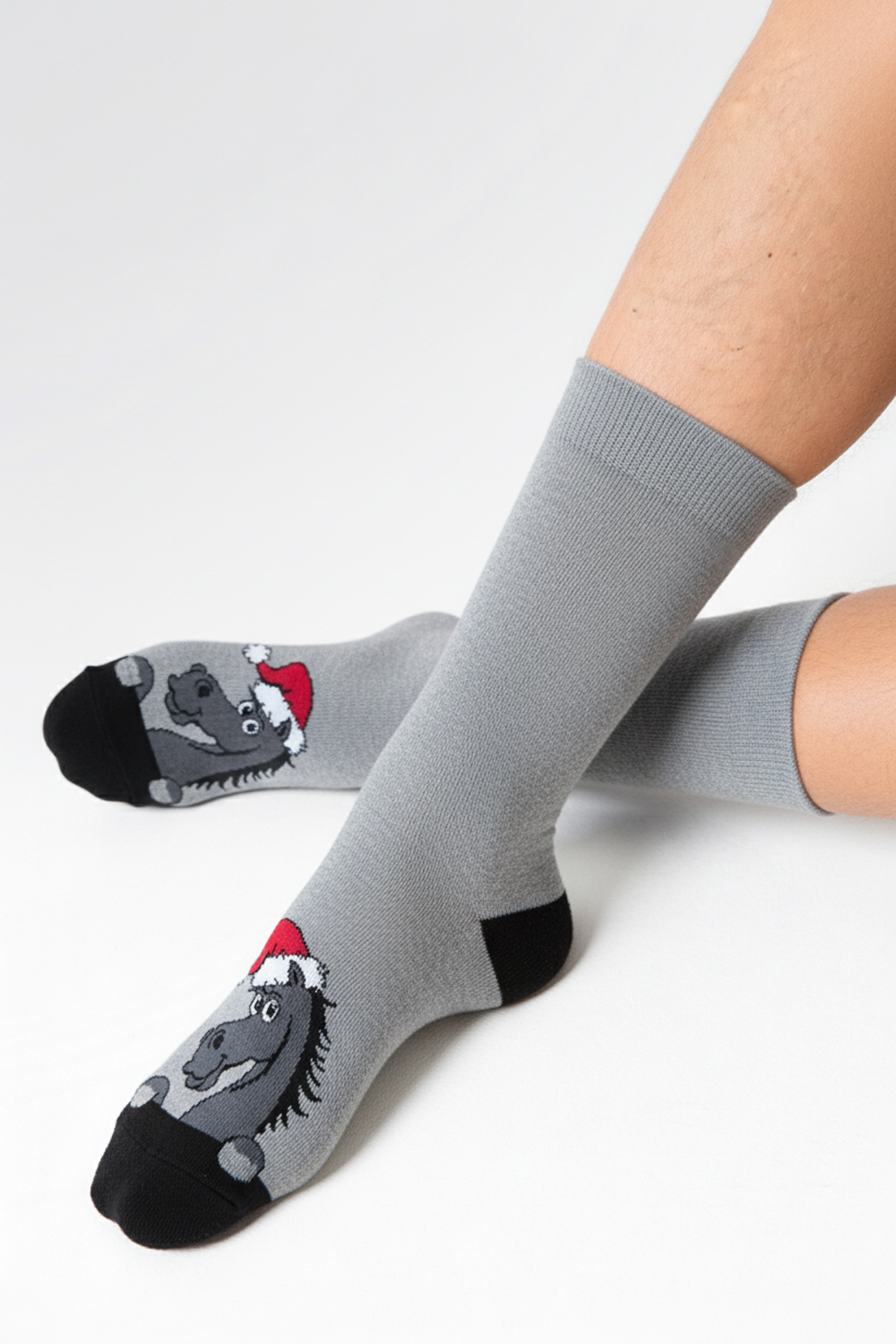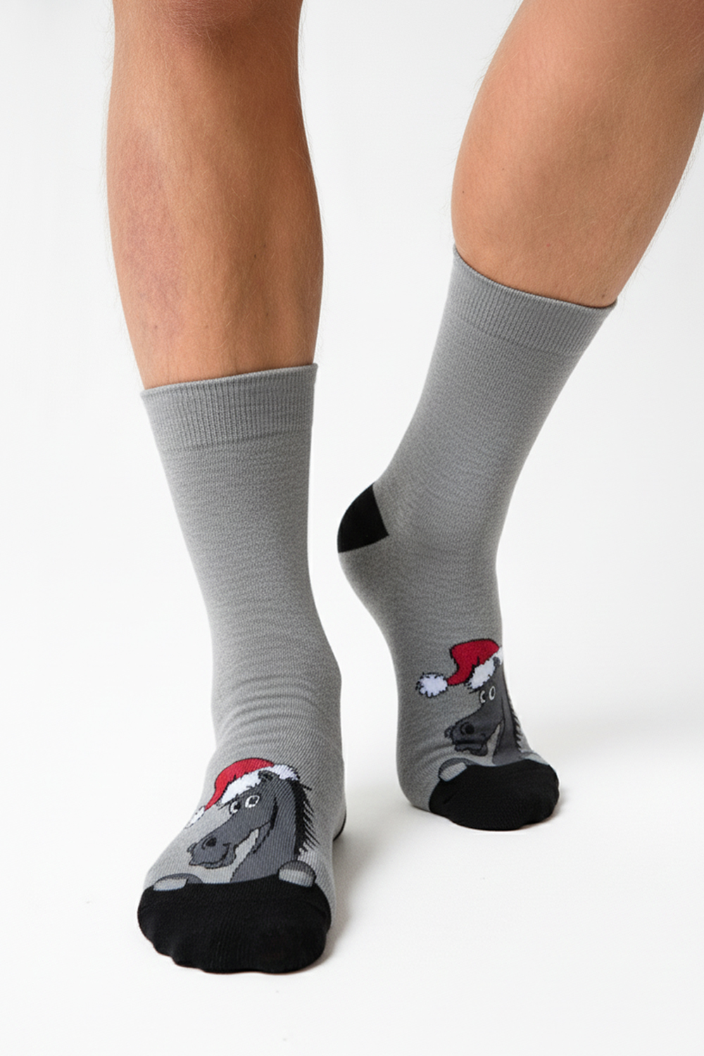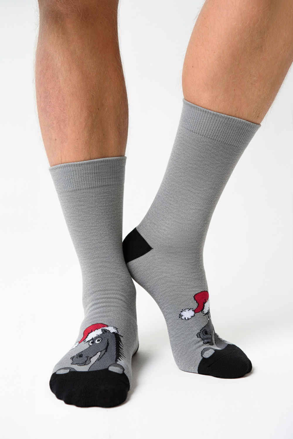 Новогодние мужские носочки с символом 2026 года. Отличный подарок на праздник для друга, сына, коллеги и любимого. Расцветка: черный; Состав: 78% х/б 20% ПЭ 2% эластан.