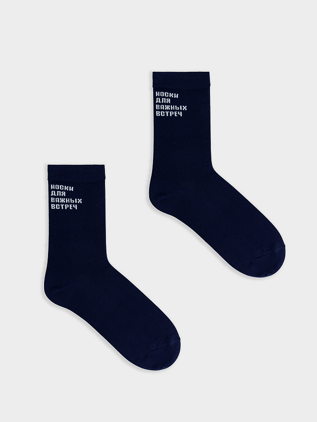 Высокие носки мужские с рисунком в виде надписи "Носки для важных встреч" — отличная возможность внести разнообразие в свой стиль и поднять настроение. Изготовлены из гребенного хлопка — пряжи высочайшего качества, мягкой, тонкой, но прочной. Натуральные волокна отлично пропускают воздух, позволяя коже дышать, и впитывают влагу, дарят ощущение комфорта в течение всего дня. Благодаря небольшому количеству эластана в составе, длинные носки хорошо облегают стопу и сохраняют форму даже после множества стирок. Мягкая эластичная резинка надежно удерживает носки на ноге, но не давит. Пятка и мысок дополнительно усилены, что гарантирует защиту от протирания и повышенную износостойкость — мужские носки с принтом прослужат долго. Лучший выбор на каждый день. Рекомендуем!