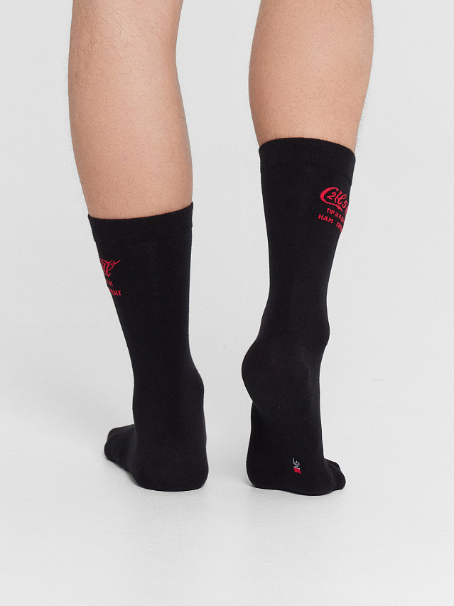 Носки мужские высокие черные с надписью "C2H5OH праздник к нам приходит"
