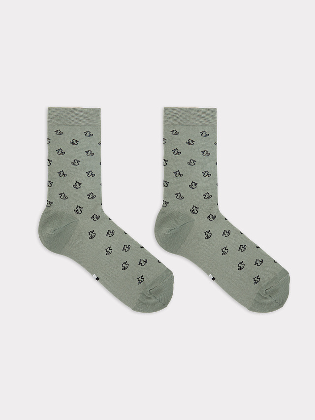 Длинные носки мужские классические с высоким бортом и с рисунком в виде уточек — оригинальный и удобный вариант для ежедневной носки. Выполнены из гребенного хлопка - пряжи высочайшего качества, мягкой, тонкой, но прочной. Натуральные волокна отлично пропускают воздух, позволяя коже дышать, и впитывают влагу, дарят ощущение комфорта в течение всего дня. Благодаря небольшому количеству эластана в составе, длинные носки хорошо облегают стопу и сохраняют форму даже после множества стирок. Мягкая эластичная резинка надежно удерживает носки на ноге, но не давит. Пятка и мысок дополнительно усилены, что гарантирует защиту от протирания и повышенную износостойкость — мужские носки с принтом прослужат долго. Отличный выбор на каждый день. Рекомендуем!