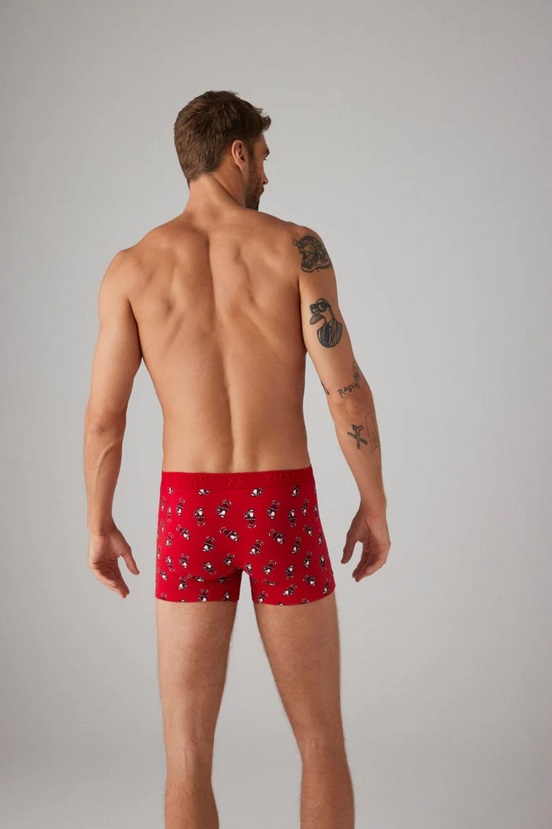 Рождественская коллекция. Боксеры с рождественским принтом. Этот праздничный дизайн призван добавить нотку радости и веселья в ваш гардероб во время праздников. Эти боксеры, изготовленные из высококачественных материалов, обеспечивают комфорт в течение всего дня, пока вы погружаетесь в атмосферу праздника. Предпочитаете ли вы классические мотивы, такие как олени, елки или снежинки, эти боксеры гарантированно создадут праздничный и уютный стиль в этот особенный сезон. 95% хлопок/ 5% эластан