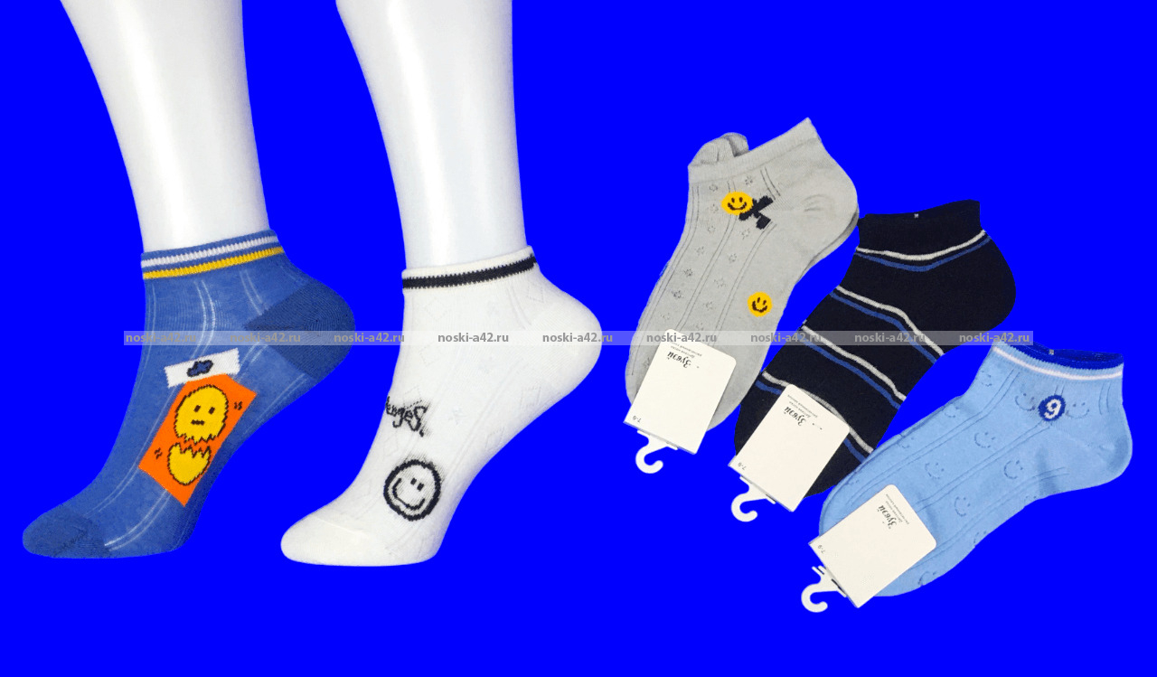 Зувэй носки детские укороченные на мальчиков из чесаного хлопка арт. 0965-1 "Смайлики" оптом.