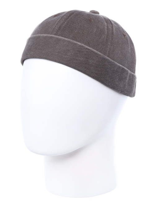 Бейсболка без козырька с маленьким двойным отворотом, выполнена из хлопковой ткани под джинсу. Размер регулируется металлической застежкой.