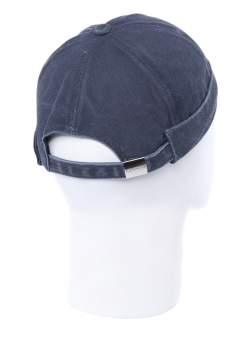 Бейсболка без козырька с маленьким двойным отворотом, выполнена из хлопковой ткани под джинсу. Размер регулируется металлической застежкой.