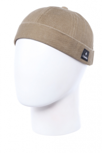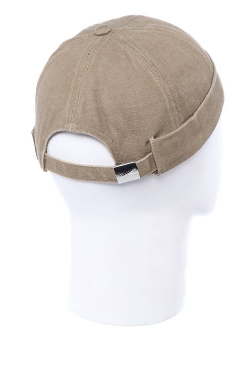 Бейсболка без козырька с маленьким двойным отворотом, выполнена из хлопковой ткани под джинсу. Размер регулируется металлической застежкой.