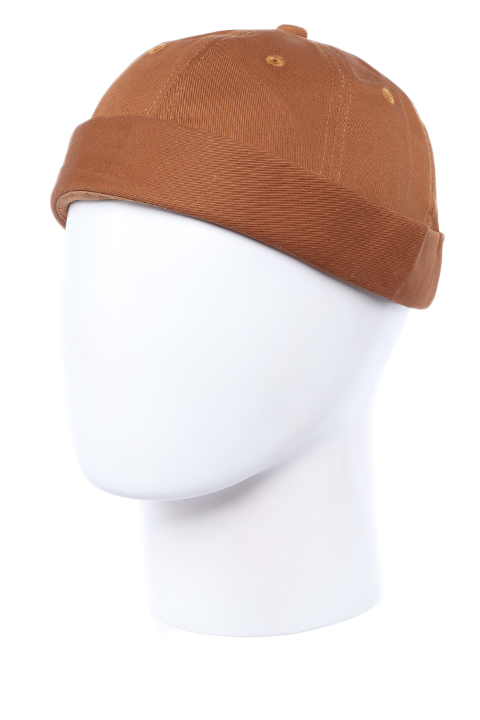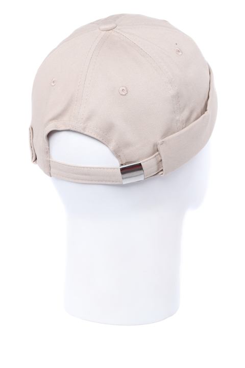 Бейсболка без козырька, с маленьким двойным отворотом, выполнена из хлопковой ткани. Размер регулируется металлической застежкой.