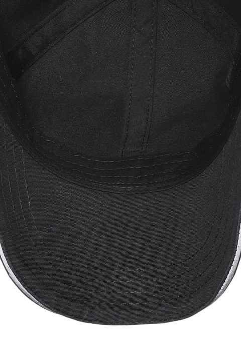 Бейсболка выполнена из плотного хлопка, с классическим изогнутым козырьком и светоотражающим вшивным кантом. Передняя часть модели мягкая. Размер регулируется металлической застежкой.