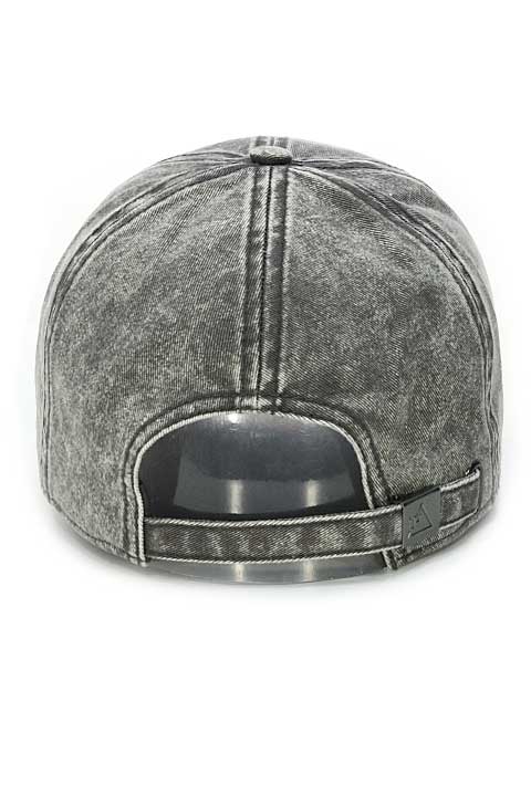 Бейсболка выполнена из "вареной" джинсовой ткани с мягкой передней частью и изогнутым классическим козырьком. Размер регулируется металлической застежкой.