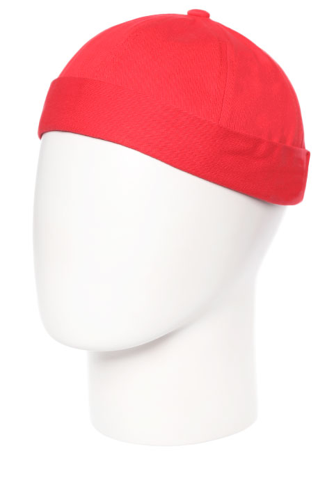Бейсболка без козырька, с маленьким двойным отворотом, выполнена из плотного, мягкого хлопка. Размер регулируется металлической застежкой.