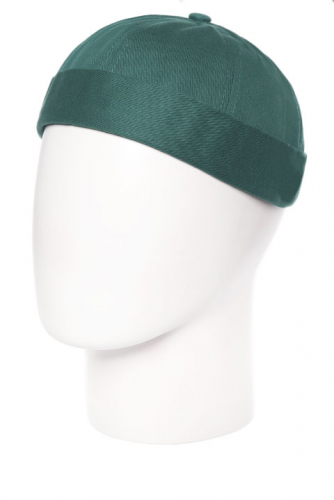 Бейсболка без козырька, с маленьким двойным отворотом, выполнена из плотного, мягкого хлопка. Размер регулируется металлической застежкой.