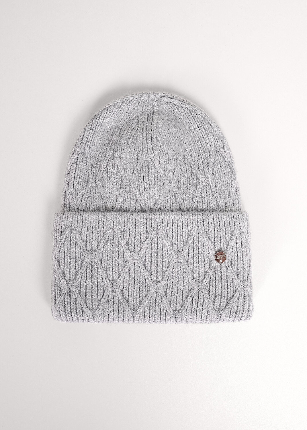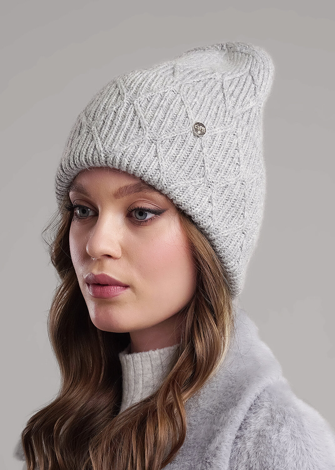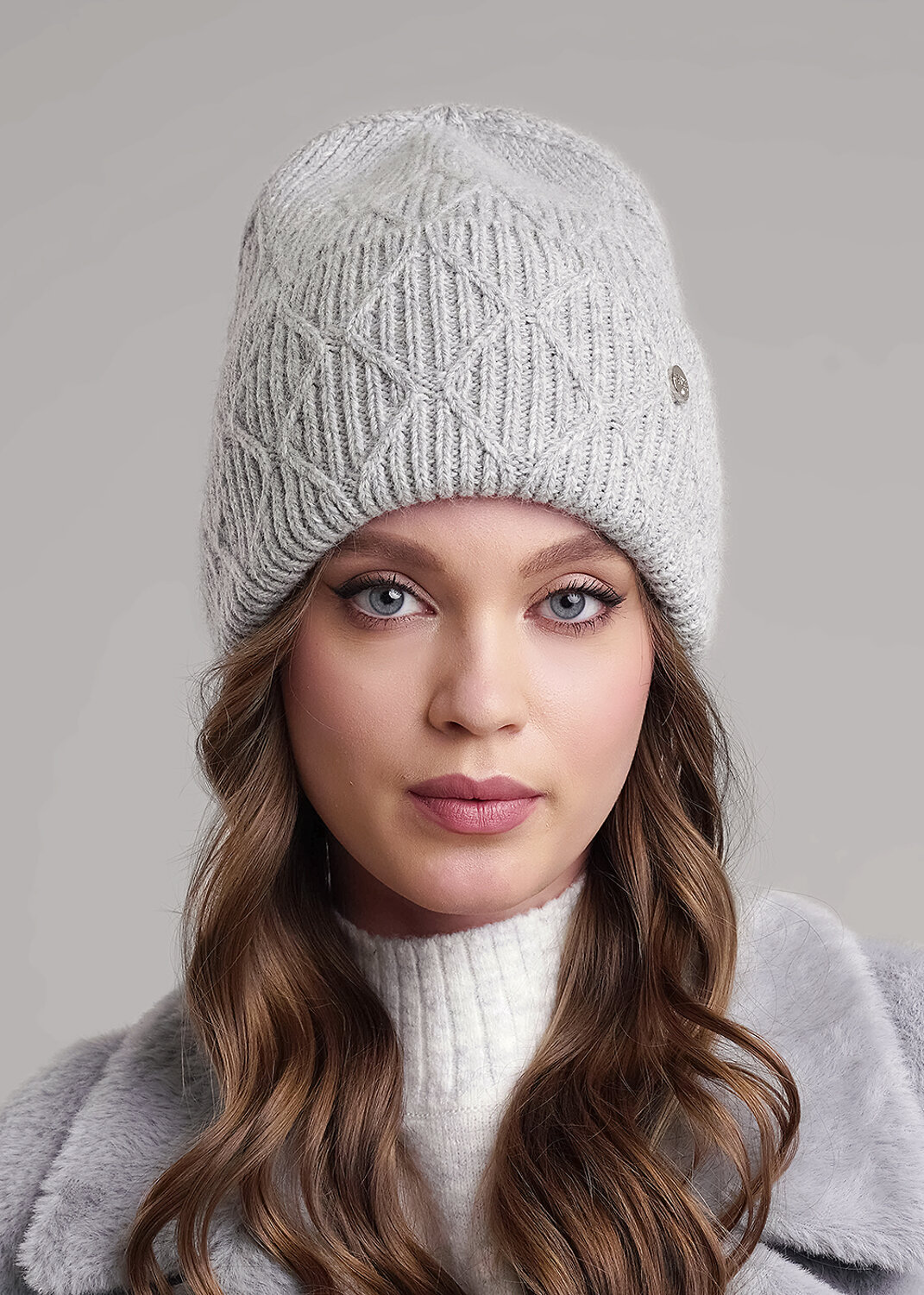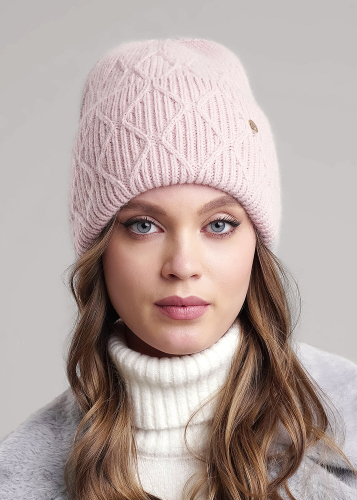Женская шапка с отворотом выполнена из высококачественной пряжи с добавлением ангоры, декорирована стильной нашивкой. Утепление флисом по всей голове. Станет не только отличной защитой от холода, но и модным аксессуаром.