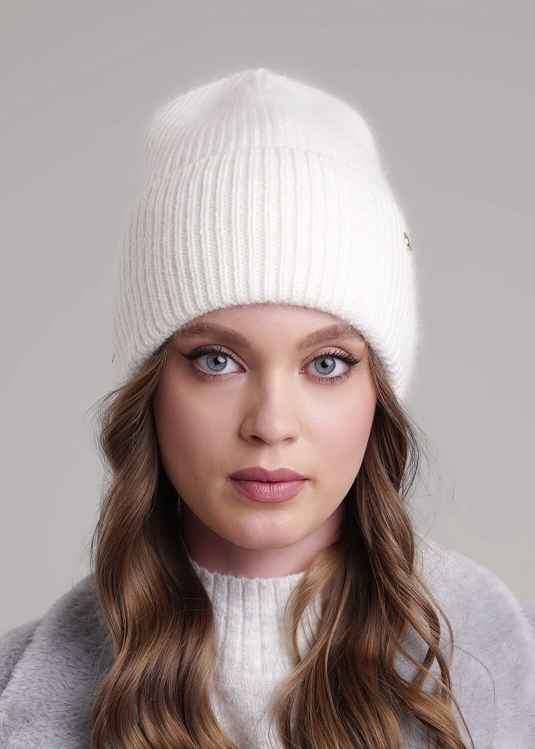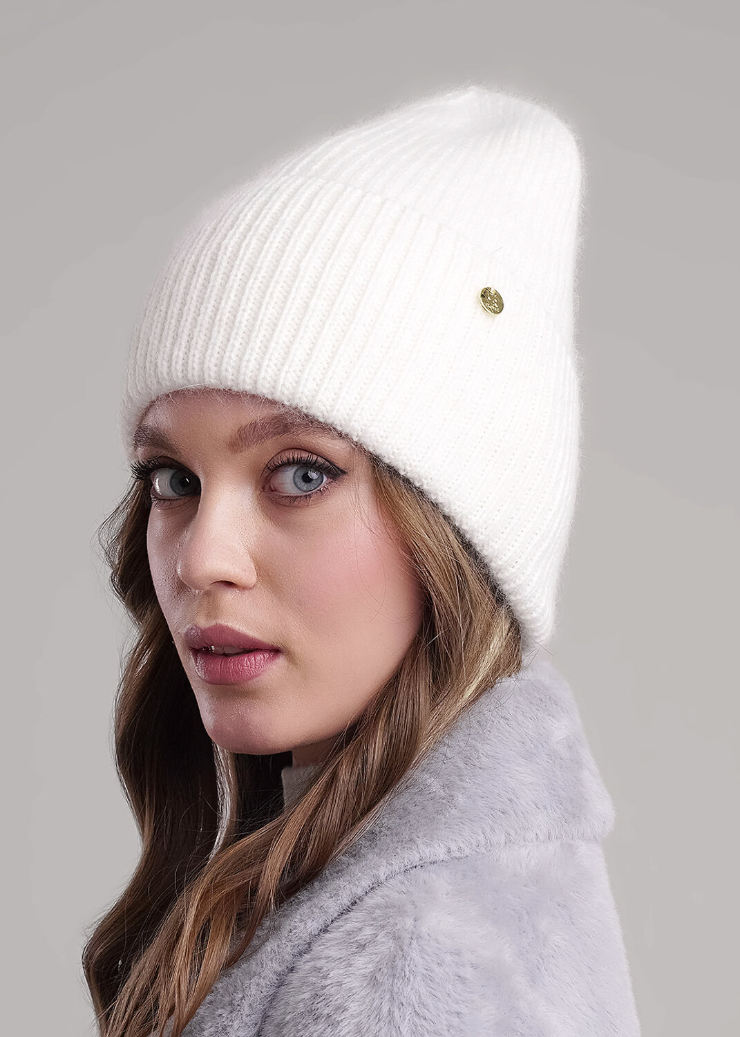 Шапка женская с отворотом, с флисовой подкладкой, декорирована стильным украшением. Выполнена из мягкой пряжи с добавлением ангоры, благодаря чему хорошо сохраняет тепло. Отличный выбор для холодной зимы.