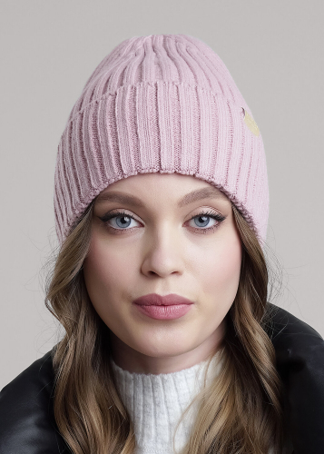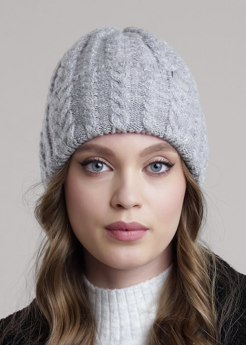 Женская двойная шапка выполнена из высококачественной мягкой пушистой пряжи с добавлением ангоры. Подклад выполнен из акриловой пряжи. Декорирована нашивкой логотип, подойдёт для холодной зимы.