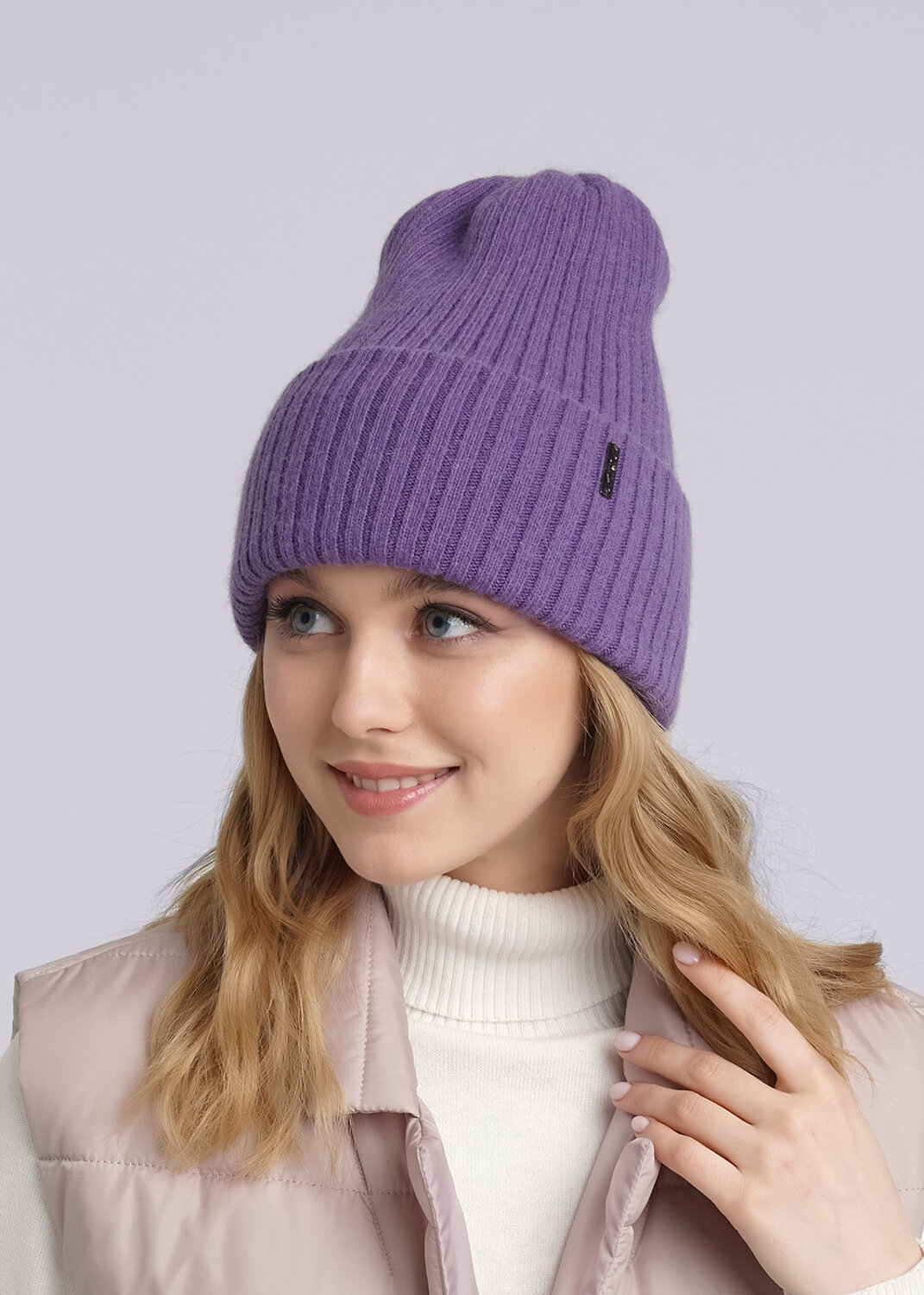 Женская двойная шапка с отворотом, декорирована стильной имиджевой нашивкой. Идеальна для зимы.