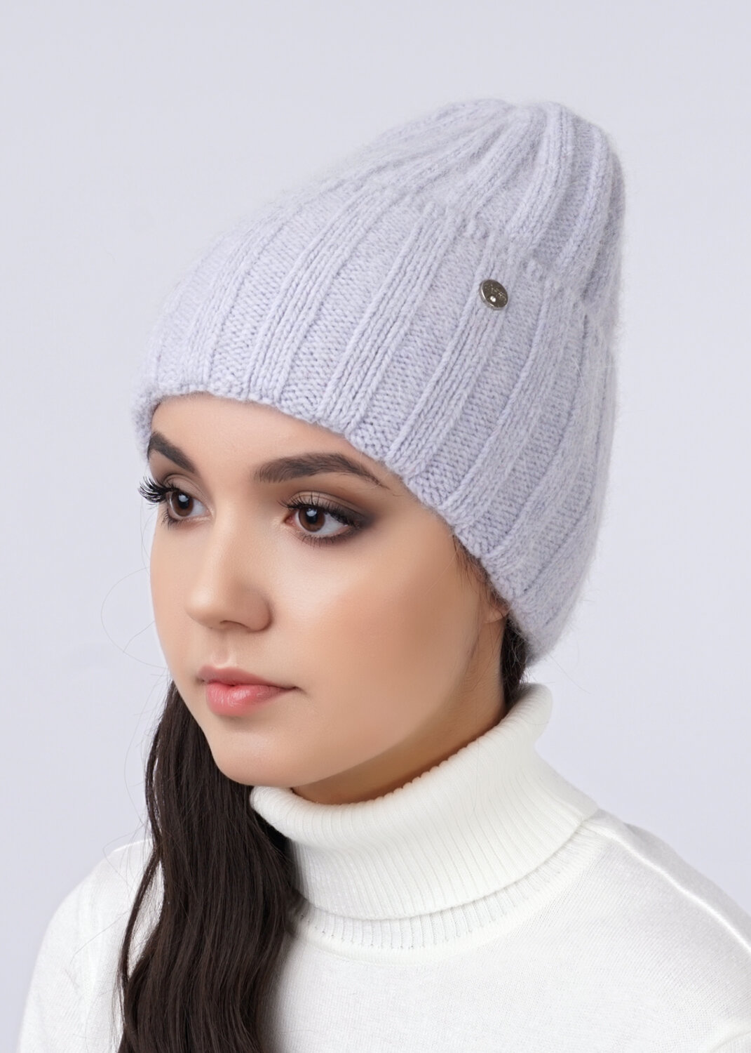 Женская шапка с отворотом, связаная ластичным переплетением. Дополнительное утепление - флис