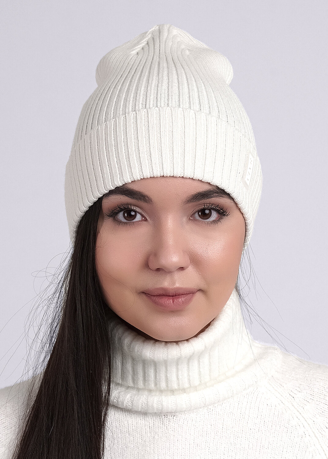 Шапка женская с отворотом, выполнена ластичным переплетением, декорирована стильной нашивкой логотип. Идеально подойдёт для осенне- весеннего периода.
