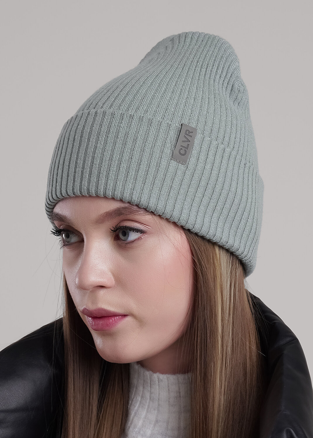 Стильная женская шапка двухслойная, с отворотом, без подклада, декорирована имиджевой нашивкой логотип. Подходит для холодной осени, тёплой зимы.