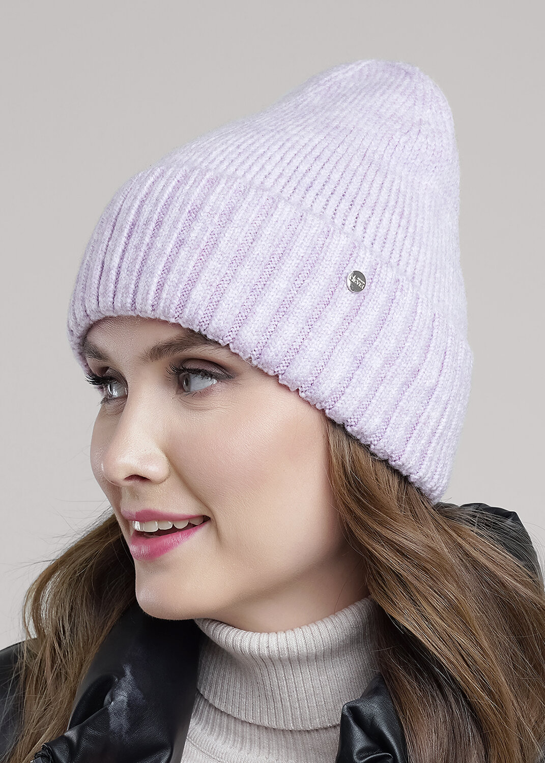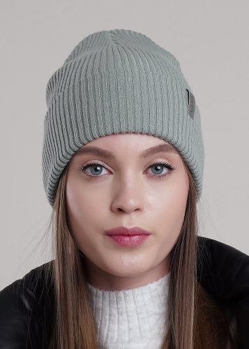 Шапка женская однослойная с отворотом, без подклада. Выполнена из высококачественной пряжи, декорирована стильной нашивкой. Станет не только отличной защитой от холода, но и модным аксессуаром.