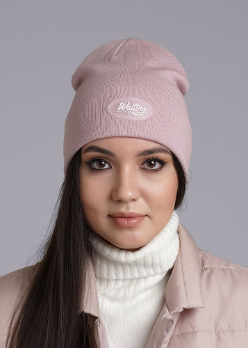 Женская двойная шапка без отворота, без подклада, декорирована нашивкой логотип. Подойдёт для холодной осени - тёплой зимы.