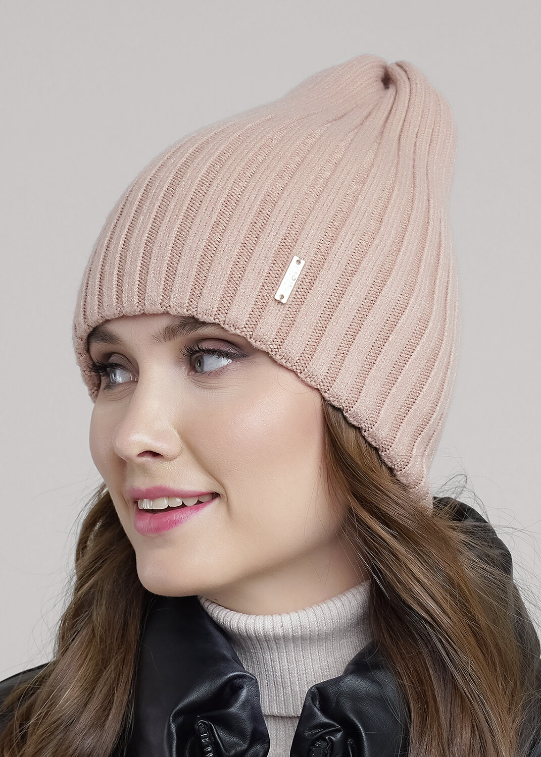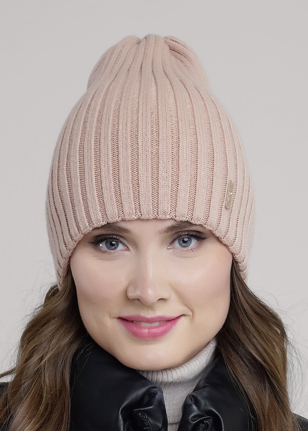 Женская двойная шапка без отворота, без подклада, декорирована нашивкой логотип. Подойдёт для холодной осени - тёплой зимы.