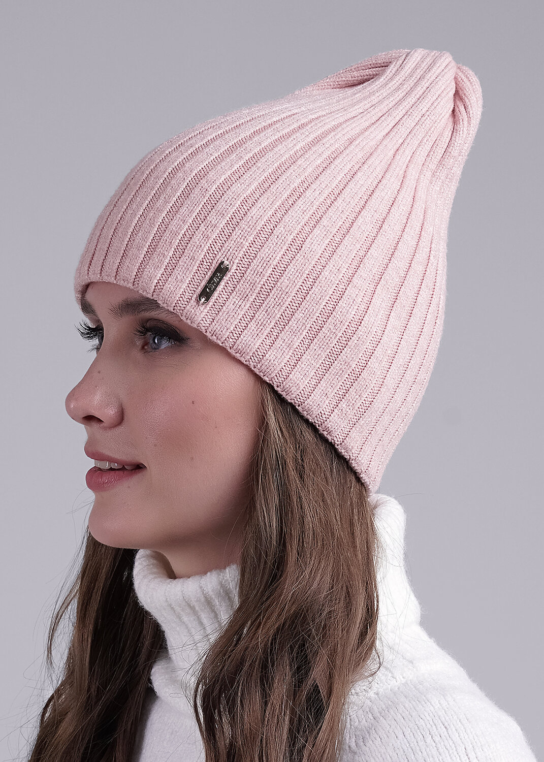 Женская двойная шапка, декорирована нашивкой логотип. Подойдёт для холодной осени- тёплой зимы.
