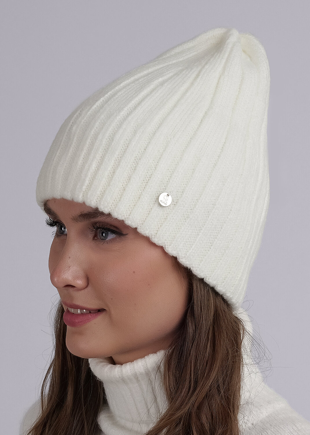 Женская двойная шапка, декорирована нашивкой логотип. Отлично подойдёт для зимы.