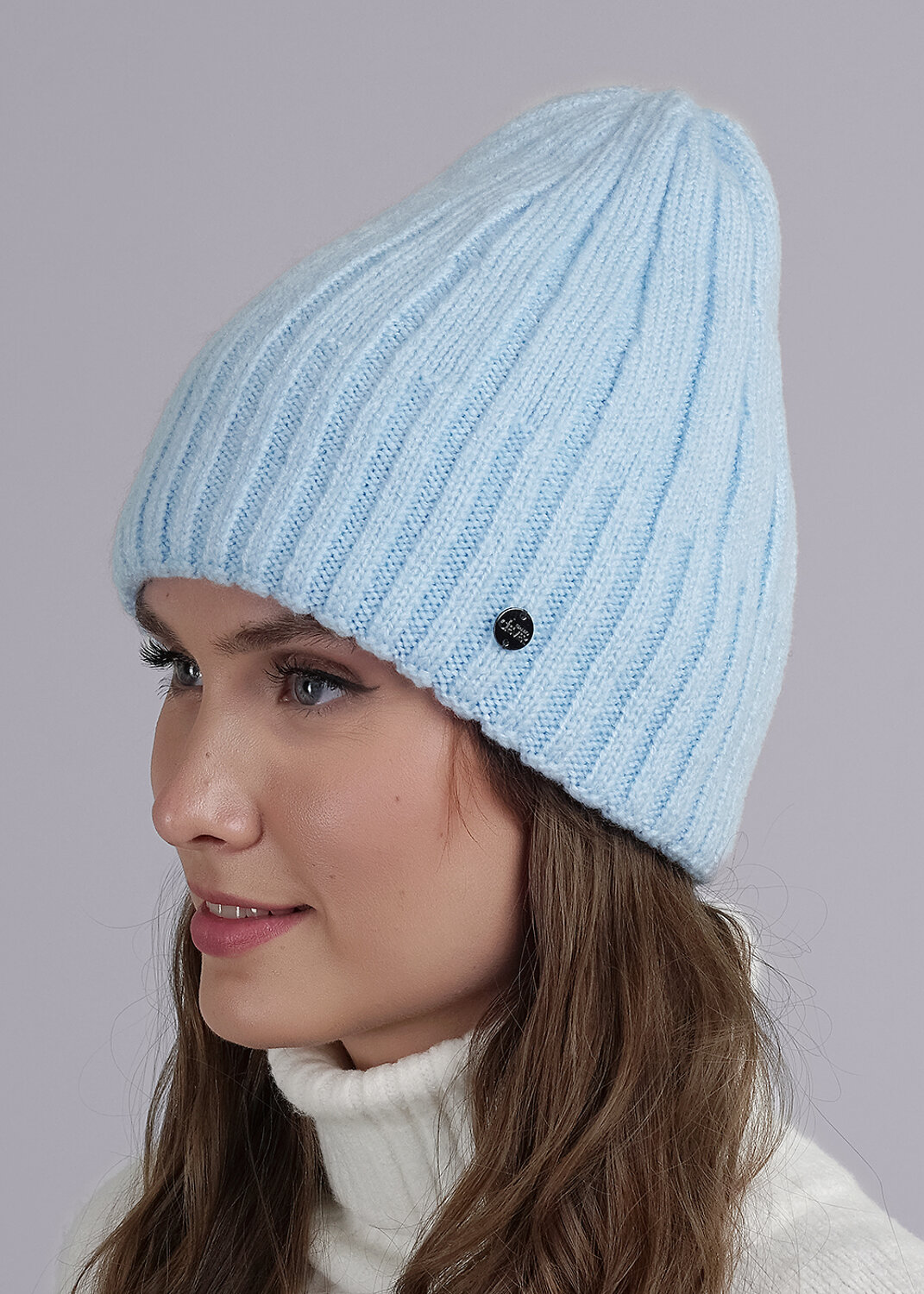 Женская двойная шапка, декорирована нашивкой логотип. Отлично подойдёт для зимы.