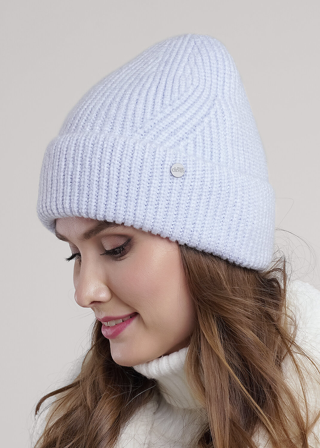 Женская шапка с отворотом, подклад из флиса по всей голове. Декорирована стильной нашивкой. Станет не только отличной защитой от холода, но и модным аксессуаром.