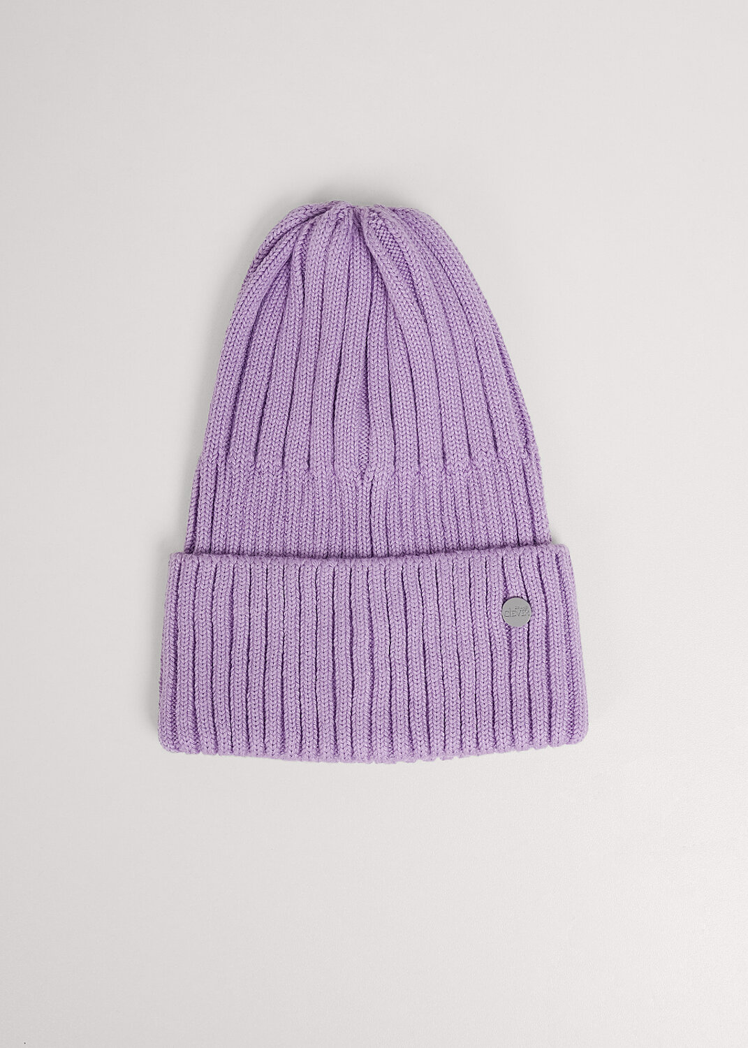 Женская шапка однослойная с отворотом, без подклада, декорирована стильной нашивкой. Изготовленная из хлопка. Идеальный вариант на осень, весну.