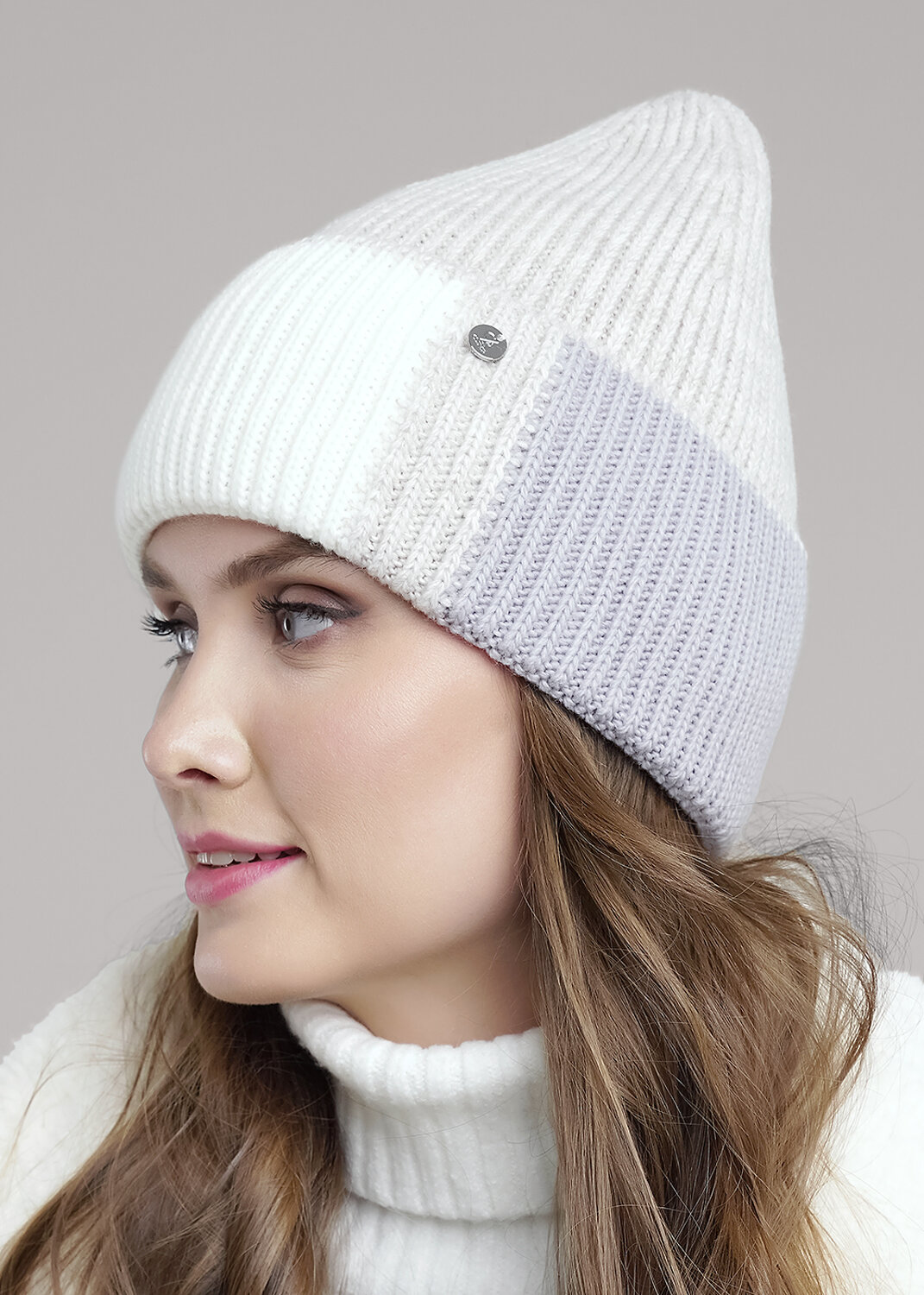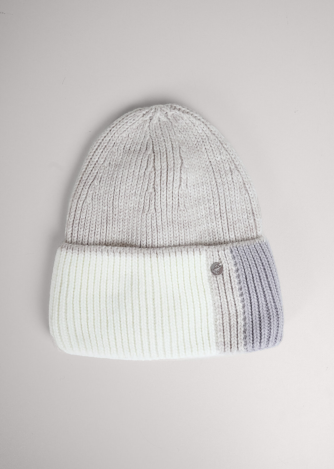 Шапка женская с отворотом, с подкладом из флиса. Выполнена из комбинированной пряжи, декорирована стильной нашивкой. Станет не только отличной защитой от холода, но и модным аксессуаром.