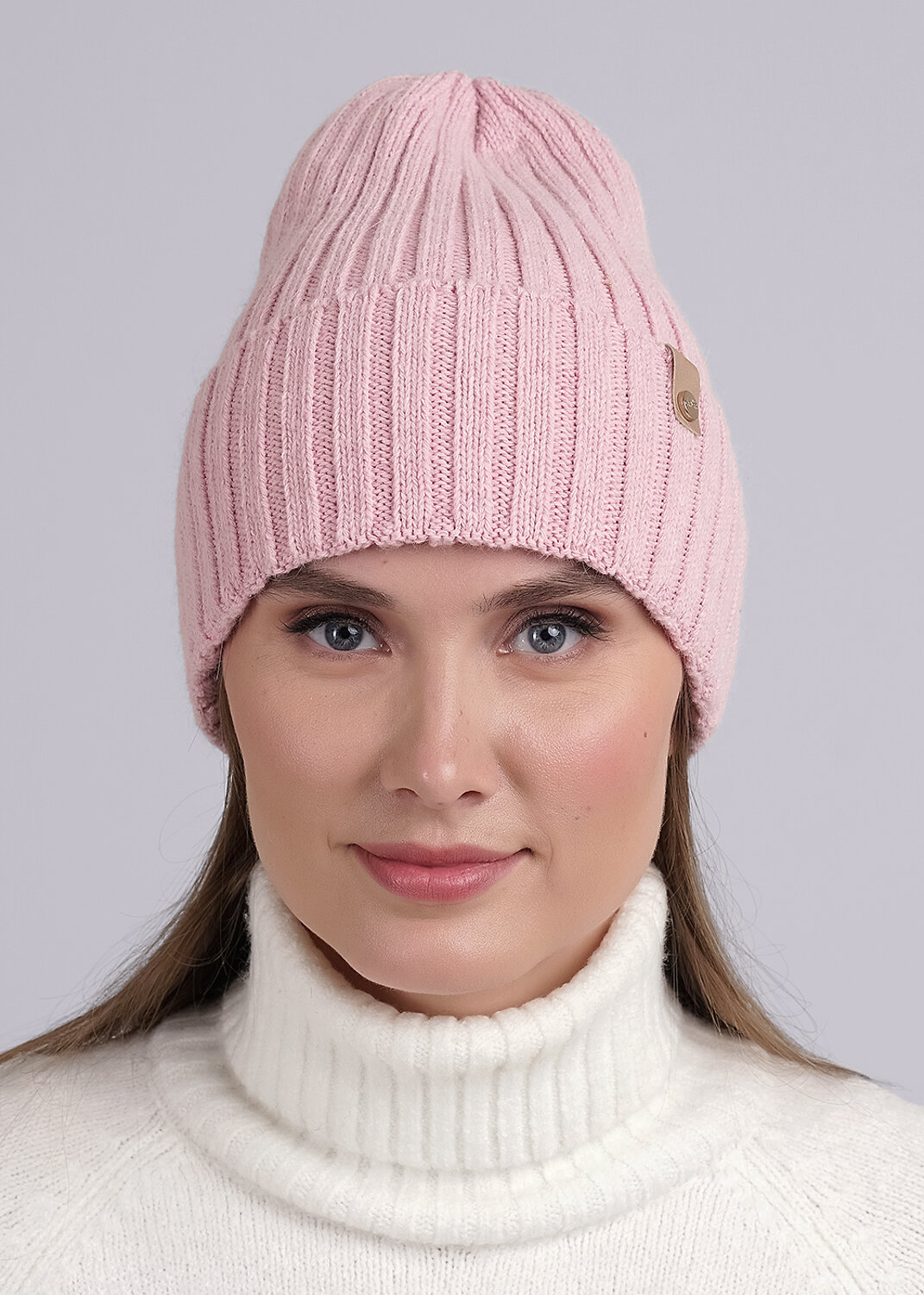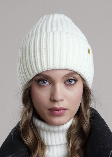 Шапка женская с отворотом, выполнена ластичным переплетением. Декорирована имиджевым логотипом. Подойдет для холодной осени- тёплой зимы.