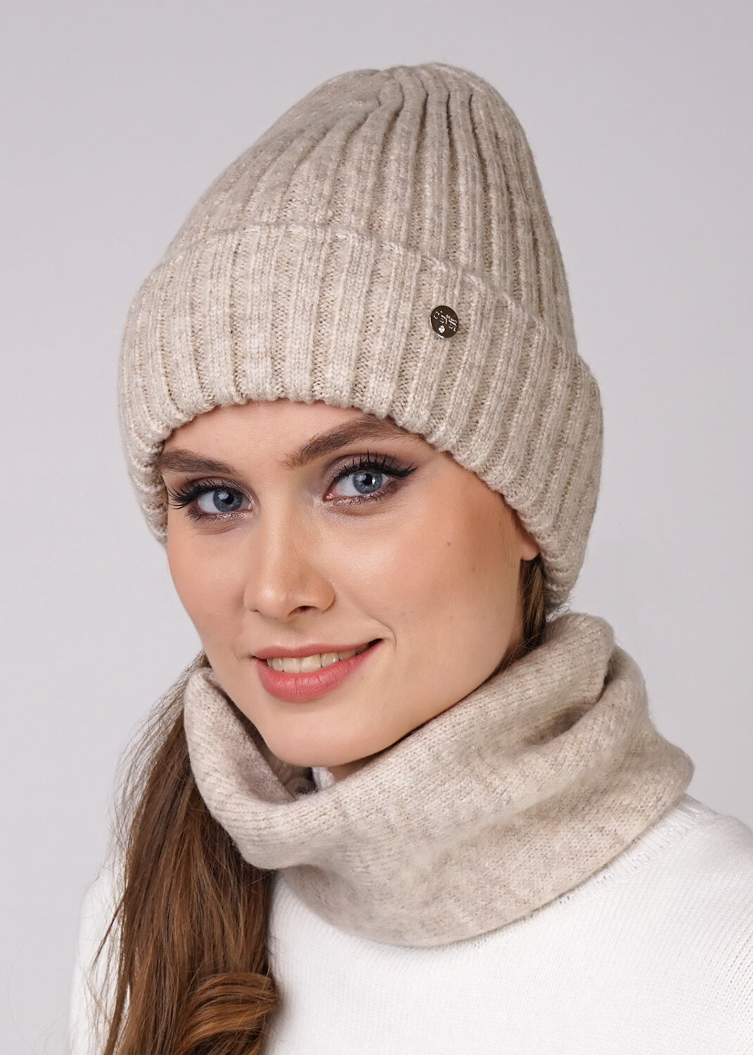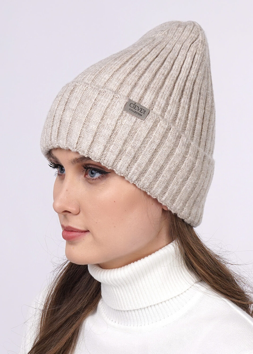 Стильная женская шапка бини с отворотом, выполнена из высококачественной пряжи, декорирована имиджевой логотипом- нашивкой. Дополнительное утепление флисом по всей голове. Идеально подойдёт для зимы.