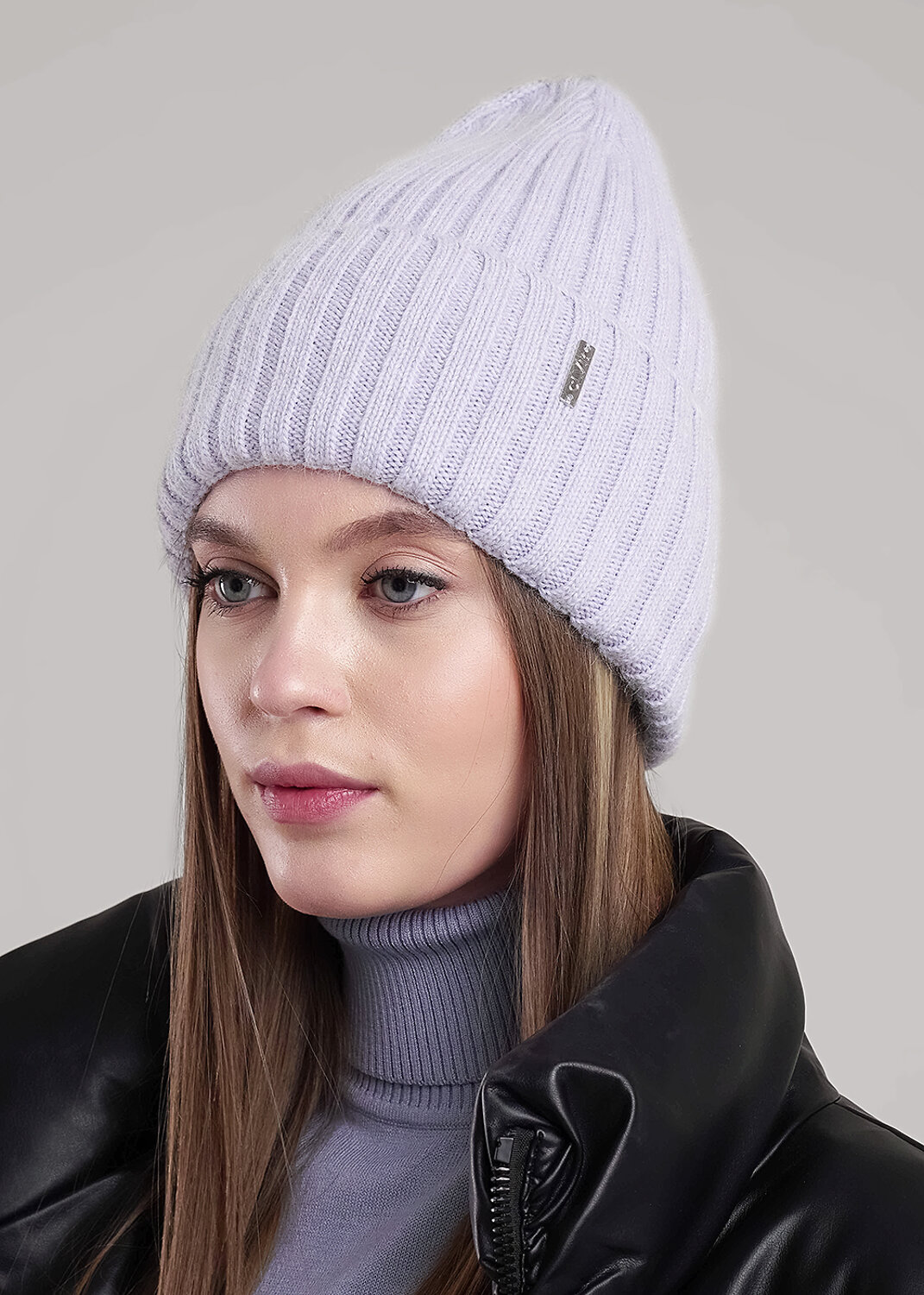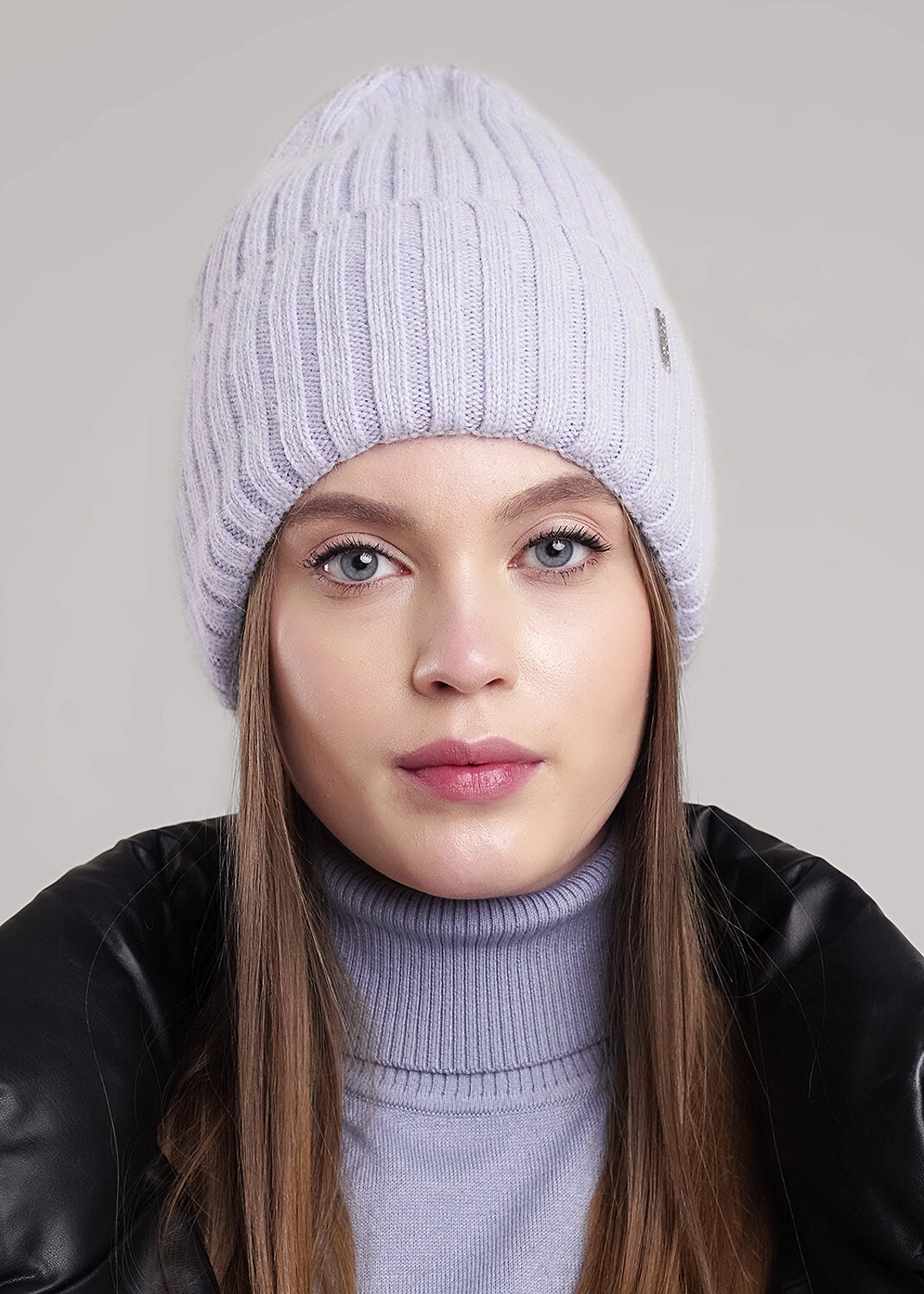 Шапка женская с отворотом, с флисовой подкладкой, декорирована стильной нашивкой. Выполнена из мягкой пряжи с добавлением ангоры, благодаря чему хорошо сохраняет тепло. Отличный выбор для холодной зимы.