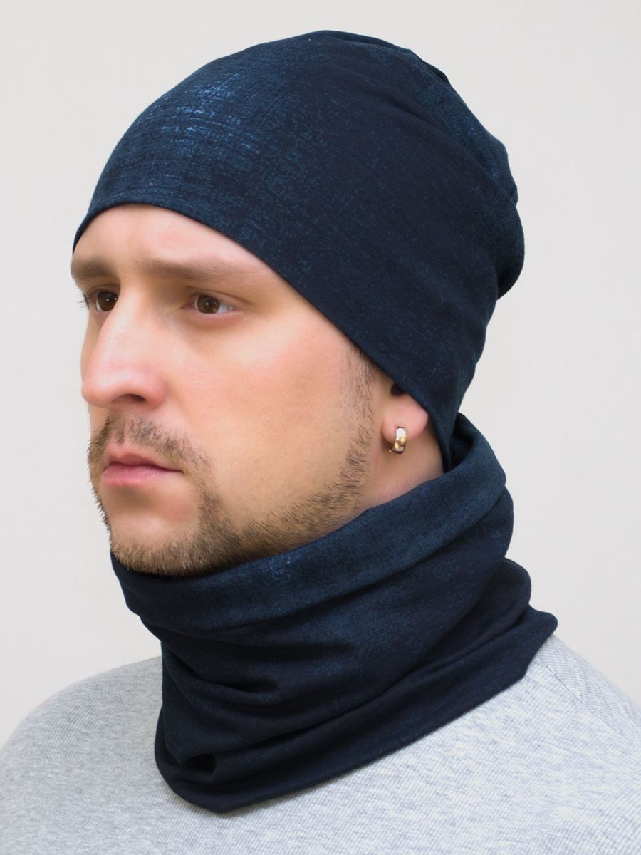 Комплект весенний-осенний мужской шапка+снуд Ники (Цвет синий), размер 54-58